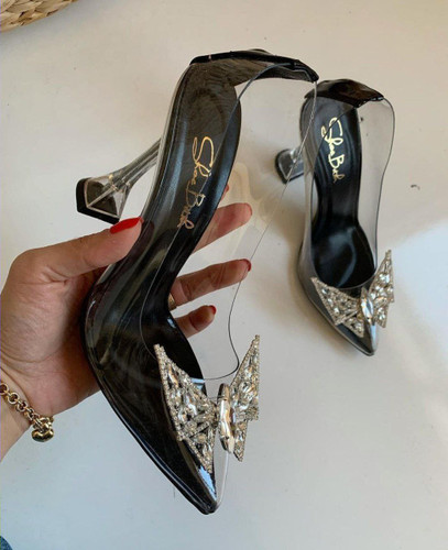 کفش مجلسی پاشنه ۵ و ۷سانت طلقی پروانهای کد ۱۱۱