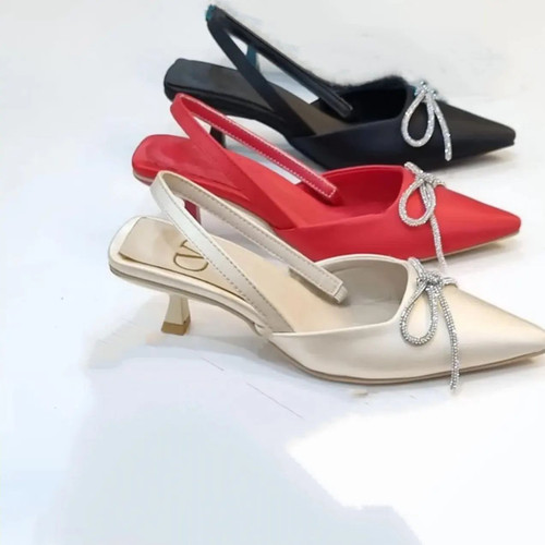کفش مجلسی زنانه ساتن پاپیون نگینی پاشنه ۳سانت کد ۱۴۳