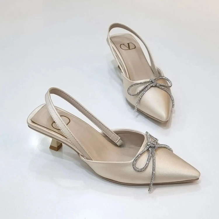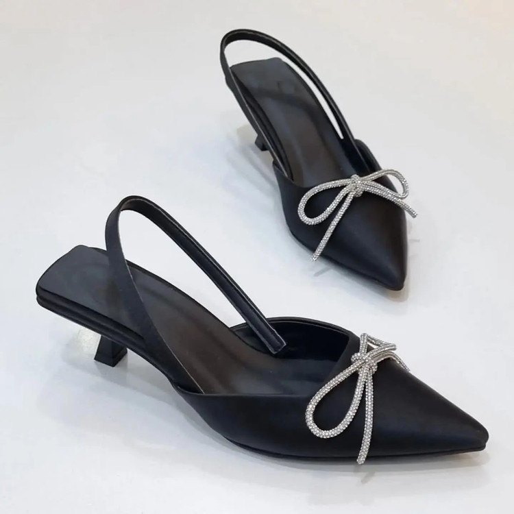 کفش مجلسی زنانه ساتن پاپیون نگینی پاشنه ۳سانت کد ۱۴۳