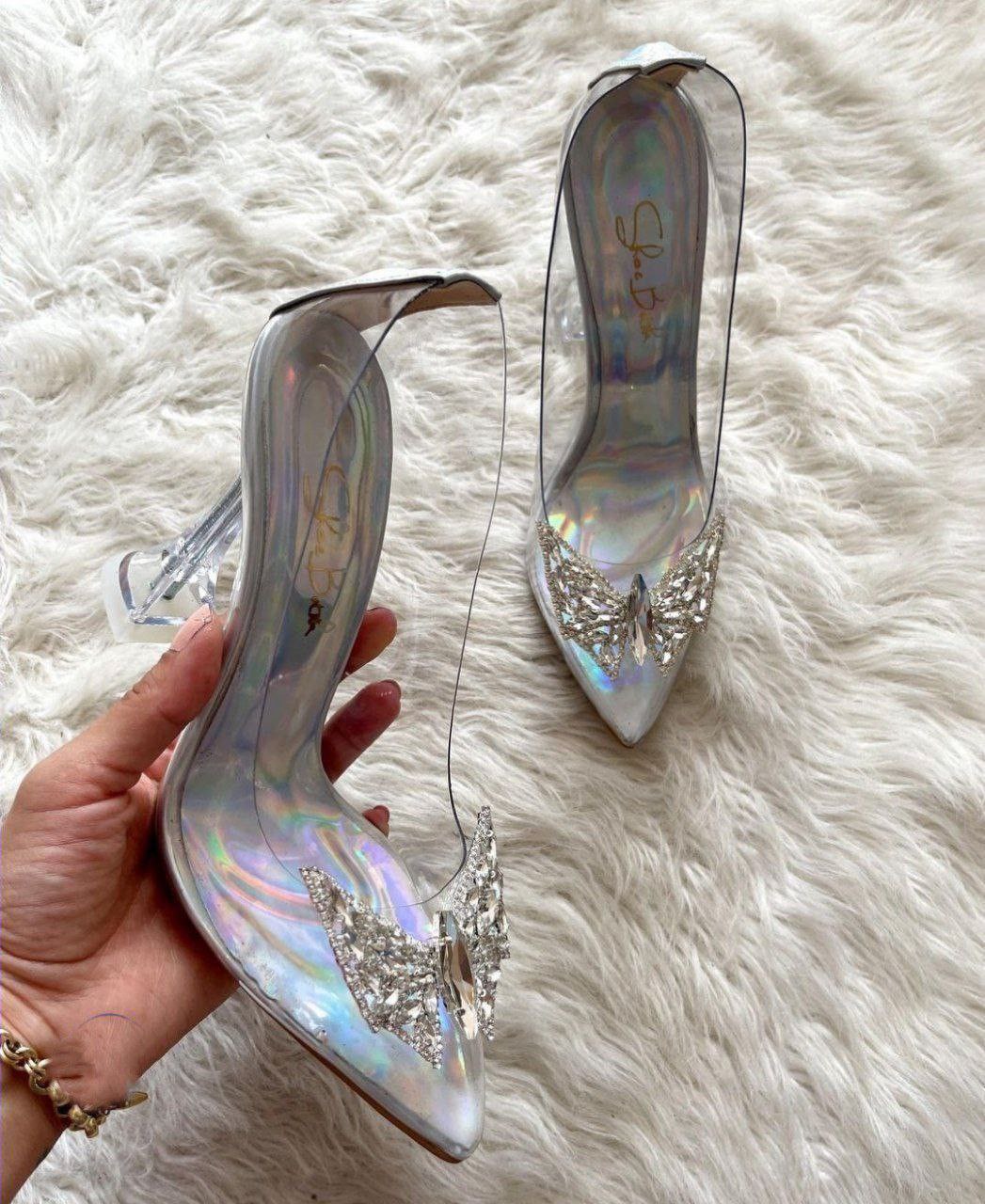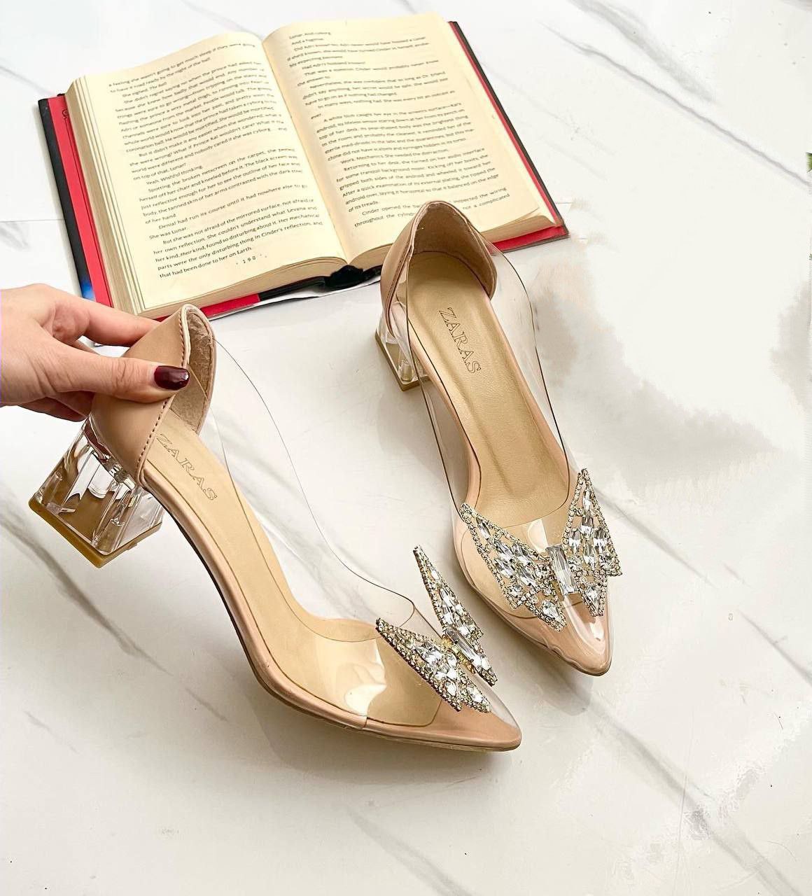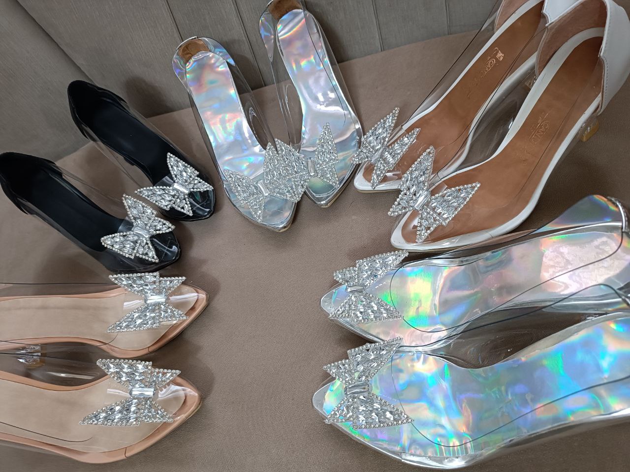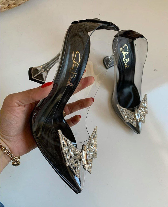 کفش مجلسی پاشنه ۵ و ۷سانت طلقی پروانهای کد ۱۱۱