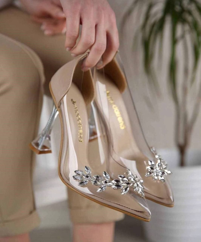 کفش مجلسی پاشنه ۵ و ۷ سانت طلقی گندمی کد ۱۱۲